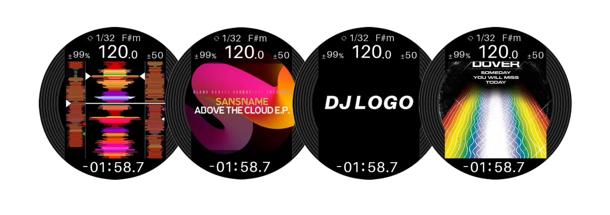 このディスプレイには、再生中の楽曲の波形や再生速度、BPM、残り時間・経過時間など、DJプレイに欠かせない情報が表示されます。プレイ中に視線を逸らすことなく必要な情報を即座に把握できることが、プレイヤビリティの向上に直結するからです。